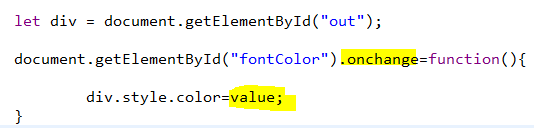 onchange 함수로 바뀐 input 값이 있으면 바뀐값을 가져다가 div와 연결해서 div 안에있는 글자컬러, 배경컬러, border 굵기 를 변경하고 싶다. 근데 함수를 계속 수정해도 값이 가져와지지 않는다..!!! 뭐가 문제일까? 바로 value; 가 문제였다. value 만 쓰는게 아니라 앞에 this까지 붙여야 했던것.. 이렇게 수정하면 바뀐 값을 아주 잘 가져온다. input type="color" 의 값을 onchange 가 가져와서 div속의 font컬러를 바꾼모습 글자색선택: 배경색선택: 테두리선 굵기선택: 없음 1 3 5 7 9 오늘은 즐거운 금요일 혹시 모르니 내가했던 예제도 함께 올리겠다