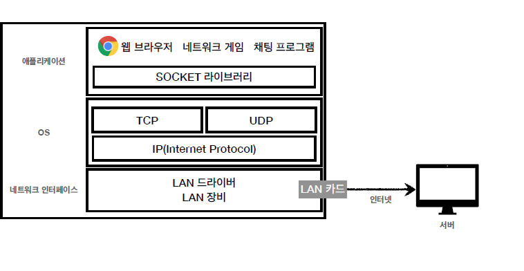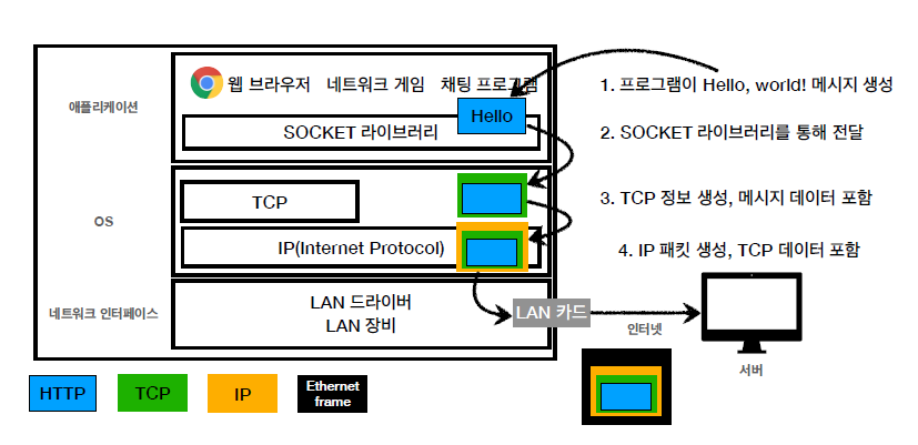 먼저 Socket 라이브러리를 통해서 OS 계층에 메시지를 넘긴다.
