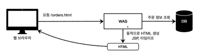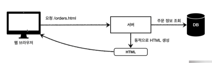 - 동적으로 필요한 HTML 파일을 생성해서 전달합니다. (예 : JSP, 타임리프)