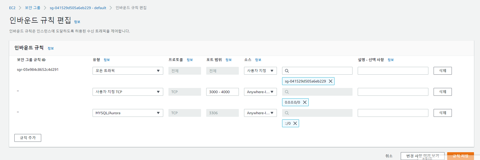 인바운드 규칙편집만 아래 사진처럼 하고↓ 나머지는