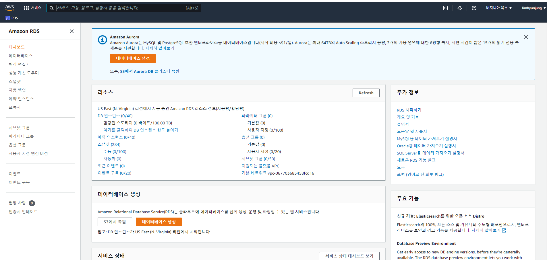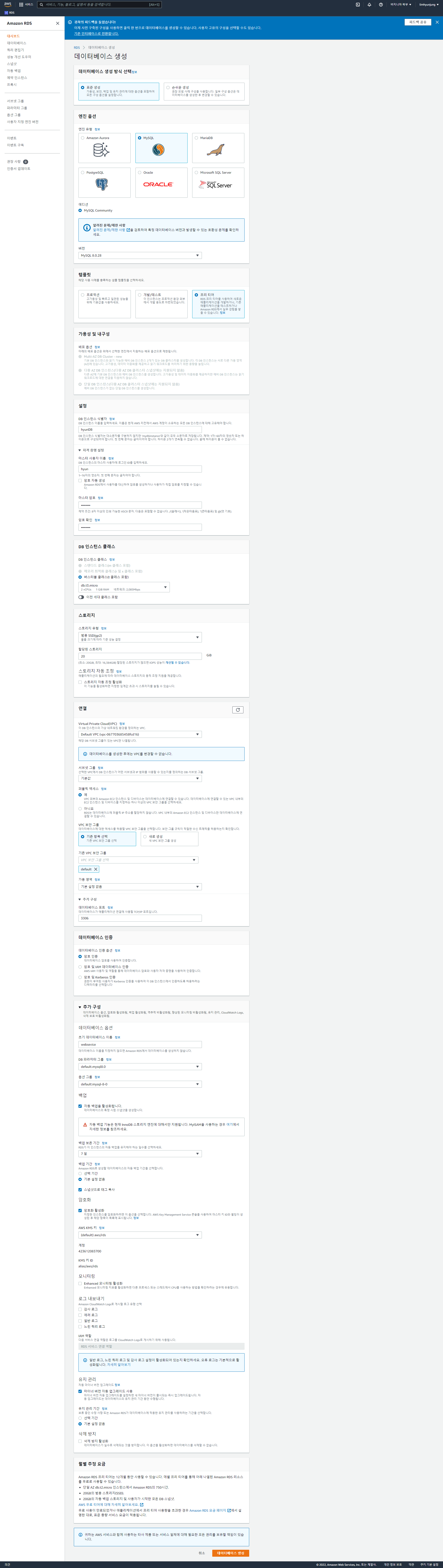 이건 학원 카페에 있는 AWS 가입, DB생성 하는 순서
