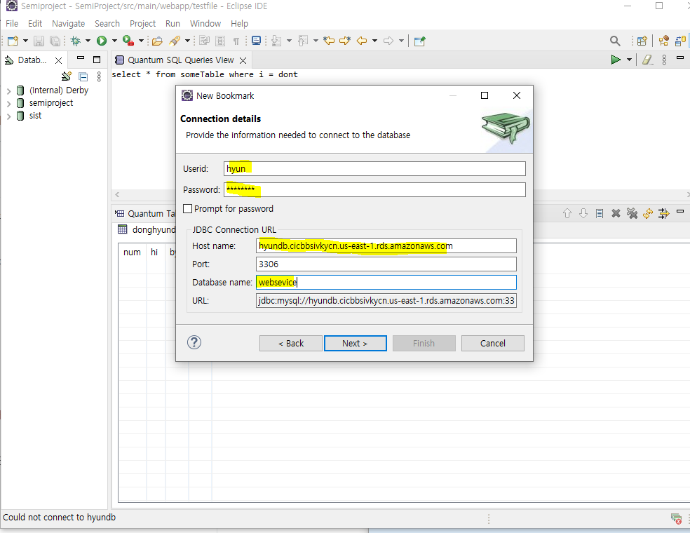 6. 그럼 이제 DB 생성은 끝이다. 이제 이클립스 퀀텀DB에 AWS연결 해보자